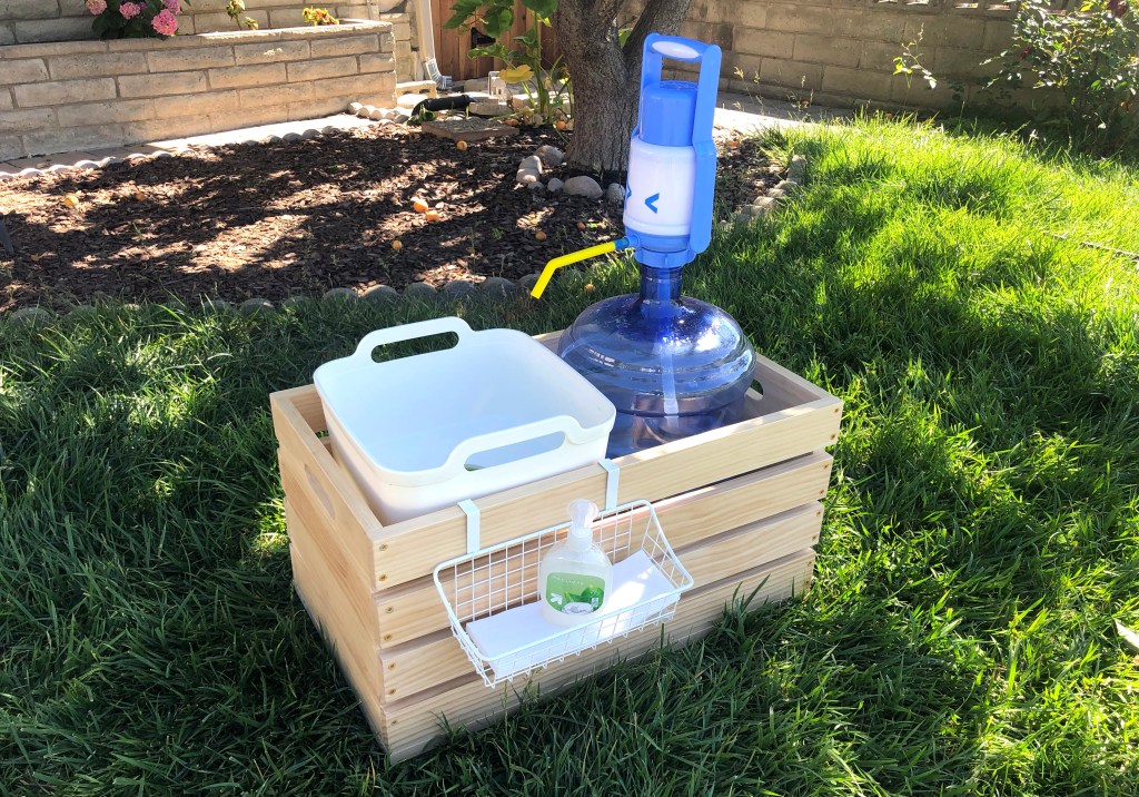 Here is a video I made that shows the DIY portable hand-washing station in action: