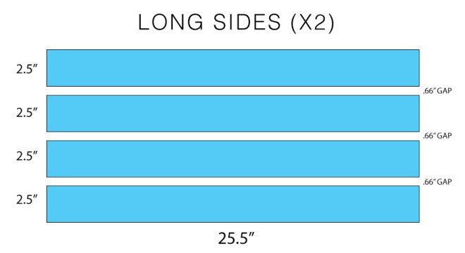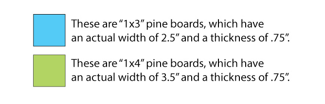 1×3 pine boards (11 pieces that are 25.5″ in length AND 4 pieces that are 13″ in length)