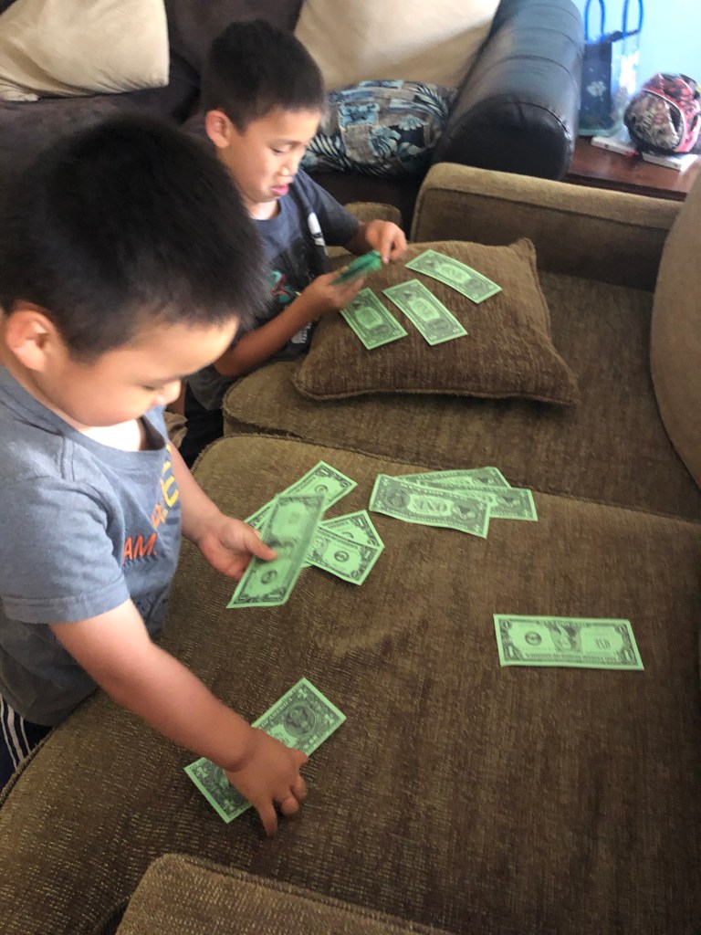 Summer break is almost over now and we have just had our 5th shopping day. Zach is still working toward the giant Star Wars Lego set. He saves about 80% of his earnings each week to put toward the set. Andy saves about 20% of his earnings and the rest he uses to purchase snacks. Except the last few weeks we told him he really needs to save more agressively if he wants that Paw Patrol plane. He did, and he finally was able to buy the plane this week and was so excited!