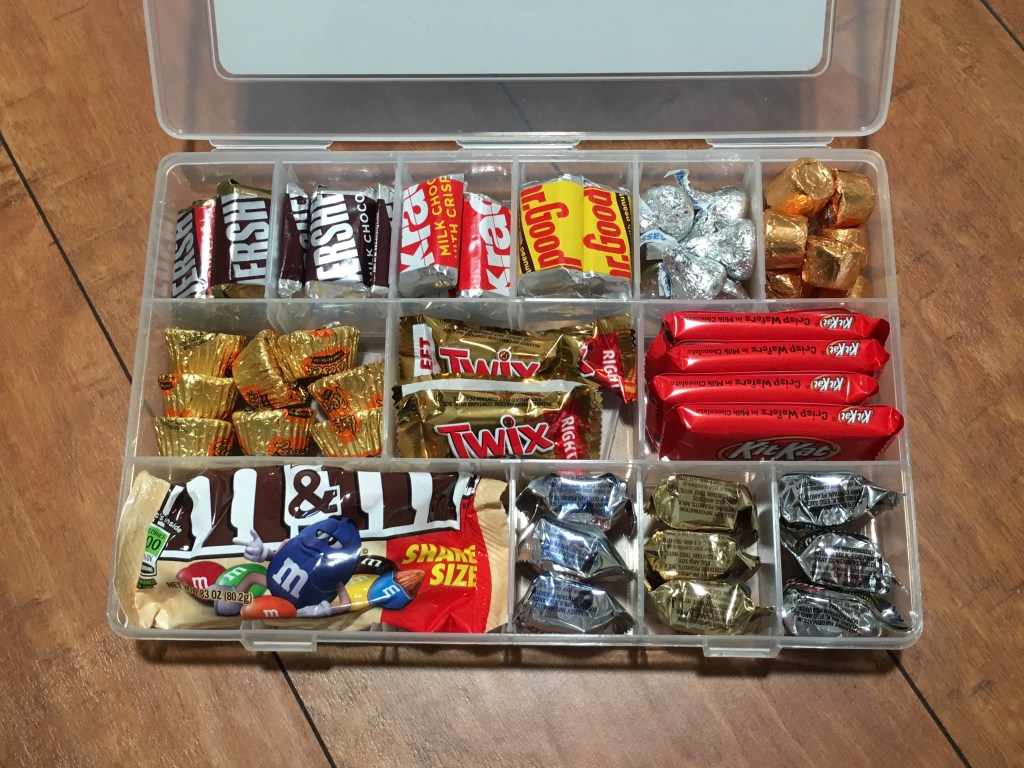 You can find these bead organizers in different sizes but be sure to find the one with the removable dividers so you can adjust the size of each cell depending on the size of the candy. I bought the above one at Joanns but couldn’t find it on their website. This similar one on Amazon seems to be the same.